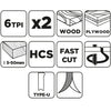 Dekopírfűrészlap, U-befogó, HCS, 6TPI, 75/100mm, fa-rétegelt lemez, 2db