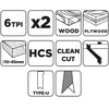 Dekopírfűrészlap, U-befogó, HCS, 6TPI, 74/100mm, fa-rétegelt lemez, 2db