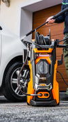 NEO 04-705 Magasnyomású mosó, 2000W, 100 bar (max. 150 bar), fém pumpafejjel. Egy sokcélú készülék, állítható nyomással, színes LCD kijelzővel, amely minden otthonban, garázsban, műhelyben vagy kertben használatos. Jellemzője a 150 bar maximális nyomás és a percenkénti 6 literes vízhozam. Hosszú, 5 méteres nagynyomású tömlővel rendelkezik, amely a munkát megkönnyíti és felgyorsítja. A géphez tartozékkészlet is tartozik, beleértve a mosószertartályt, a felszereléstartót, a kefét és a szűrővel ellátott vízbevezető csatlakozót.