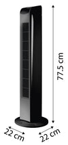 NEO 90-012 OSZLOP VENTILÁTOR, 50W, 77CM MAGAS, OSZCILLÁTOROS, TÁVIRÁNYÍTÓS. A készülék 70 fokos bal-jobb oszcillációs funkcióval, 3 működési lehetőséggel - normál, természet és alvó üzemmód -, valamint a könnyű használat érdekében érintőképernyős kijelzővel és távirányítóval rendelkezik. A NEO TOOLS ventilátor ABS szárnyakkal van ellátva. A 22 x 22,75 cm-es méreteknek köszönhetően bármilyen belső térbe illeszkedik. Max 60 dB zajkibocsátás. Időzítővel (0,5-7,5 h) és 22,6 m3/perc maximális légáramlással - egyéni beállításokkal jól működik a forró nyári hónapokban. A készülék ~230 V 50 Hz-es feszültségen működik, beépített 1,5 m-es kábellel rendelkezik. Irodákba, valamint lakásokba vagy házakba egyaránt ajánlott.
