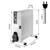 NEO 90-153 Olajradiátor, 11 bordás, 3 fokozatú, 1000/1500/2500W. 11 bordával van felszerelve, amelyek mérete 120 x 500 mm. A fűtőberendezés be-/kikapcsolóval, jelzőfénnyel és állítható termosztáttal rendelkezik. A túlmelegedés elleni védelemnek és a billenőkapcsolónak köszönhetően hozzájárul a biztonságos használathoz.A NEO TOOLS olajradiátor fogantyúval, a könnyű mozgatáshoz kerekekkel és kábeltartóval (kábelhossz 1,35 m) van felszerelve. A 230 V 50 Hz-es szabványos áramellátáshoz van igazítva. Jól bevált készülék kis helyiségek fűtésére.