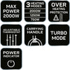 NEO 90-155 Elektromos konvektor, ventillátorral 3fokozatú, 750/1250/2000W. Kis háztartási, irodai vagy műhelyterek hatékony fűtésére tervezték. A termosztáttal kínált készülék 3 fűtési fokozatot biztosít, miközben 750 W, 1250 W és 2000 W teljesítményt nyújt. A gyors helyiségfelfűtést ventillátor segíti.A NEO TOOLS konvektoros fűtőtest praktikus teljesítményjelző lámpával és túlmelegedés elleni védelemmel rendelkezik, ami jelentősen hozzájárul a kényelemhez. A hordozófogantyúnak köszönhetően könnyen szállítható.Az 1,4 m-es kábellel ellátott NEO TOOLS konvektoros fűtőtestet univerzális felhasználhatóság és évekig tartó robosztusság jellemzi.