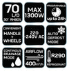A következő 24 órára történő programozás lehetőségével biztosítja a jó szervezést és megkönnyíti a felújítási munkálatokat. Ez a párátlanító modell napi 70 liter víz eltávolítását biztosítja (feltételezett 30 ℃ és 80% relatív páratartalom mellett). R290 hűtőközeggel rendelkezik.