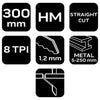 Szalagfűrészlap egyenes vágásokhoz vastag fémekhez, 5–250 mm, 300mm, HM, NEO TOOLS