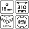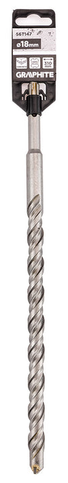 Az SDS Plus dupla spirál 18 x 310 mm 56T147 betonfúró a GRAPHITE-tól egy beton-, tégla- és kőfúrófej dupla spirállal és SDS plus befogatással. Átmérője 18 mm, teljes hossza 310 mm, munkahossza 230 mm. Számos otthoni és műhelybeli feladathoz is megfelel.