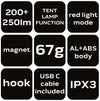 NEO 99-123 FEJLÁMPA LEVEHETŐ PÁNTTAL, MÁGNESSEL ÉS SAPKARÖGZÍTŐVEL, FEHÉR ÉS VÖRÖS LEDFÉNNYEL, USB KÁBELLEL, 250+200LM.. Sátorlámpaként is használható. Egy 800 mAh Li-Pol akkumulátorral működik, amely USB C kábelen keresztül tölthető (tartozék). A készülék teljes feltöltéséhez szükséges idő 2,5 óra. Az üzemidő viszont akár 5 óra (a piros fény használatakor) vagy 2-3 óra az XPG, COB esetében. Az alumínium testnek és a mindössze 67 g-os súlynak köszönhetően a NEO TOOLS lámpa könnyű és könnyen hordozható. A ház IPX3-as vízállósággal rendelkezik. Levehető diffúzor, akasztókonzol és mágnes a rögzítéshez. Ez egy többcélú lámpa, amely sokféleképpen használható. Jól működik hagyományos fejlámpaként vagy hatékony sátorlámpaként kempingezéskor.