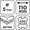 Betonfúró SDS PLUS, 2 élű, dupla spirálos, 5x110mm, min.rendelés: 3db