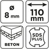 Betonfúró SDS PLUS, 2 élű, dupla spirálos, 8x110mm, min.rendelés: 3db