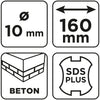 Betonfúró SDS PLUS, 2 élű, dupla spirálos, 10x160mm, min.rendelés: 3db