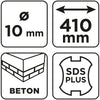 Betonfúró SDS PLUS, 2 élű, dupla spirálos, 10x410mm