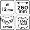 Betonfúró SDS PLUS, 2 élű, dupla spirálos, 12x260mm