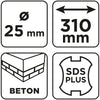 Betonfúró SDS PLUS, 2 élű, dupla spirálos, 25x310mm