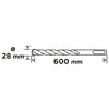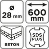 Betonfúró SDS PLUS, 2 élű, dupla spirálos, 28x600mm