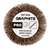 GRAPHITE 58T389 csiszolókerék csapos 60 x 15 x 6 mm, P80. Univerzális használatra tervezték, különösen a nehezen hozzáférhető területek megmunkálásához. A szemcsék elektrokorundból készülnek, a kötőanyag pedig műgyanta. Ennek a GRAPHITE márkájú csiszolókeréknek a maximális ajánlott fordulatszáma 11 000 rpm, a munkasebesség pedig 35 m/s.