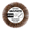 GRAPHITE 58T390 csiszolókerék csapos 60 x 15 x 6 mm, P100. Univerzális használatra tervezték, különösen a nehezen hozzáférhető területek megmunkálásához. A szemcsék elektrokorundból készülnek, a kötőanyag pedig műgyanta. Ennek a GRAPHITE márkájú csiszolókeréknek a maximális ajánlott fordulatszáma 11 000 rpm, a munkasebesség pedig 35 m/s.