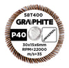 GRAPHITE 58T400 csiszolókerék csapos 30 x 15 x 6 mm, P40. Univerzális használatra tervezték, különösen a nehezen hozzáférhető területek megmunkálásához. A szemcsék elektrokorundból készülnek, a kötőanyag pedig műgyanta. Ennek a GRAPHITE márkájú csiszolókeréknek a maximális ajánlott fordulatszáma 22 000 rpm, a munkasebesség pedig 35 m/s.