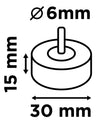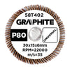 GRAPHITE 58T402 csiszolókerék csapos 30 x 15 x 6 mm, P80. Univerzális használatra tervezték, különösen a nehezen hozzáférhető területek megmunkálásához. A szemcsék elektrokorundból készülnek, a kötőanyag pedig műgyanta. Ennek a GRAPHITE márkájú csiszolókeréknek a maximális ajánlott fordulatszáma 22 000 rpm, a munkasebesség pedig 35 m/s.
